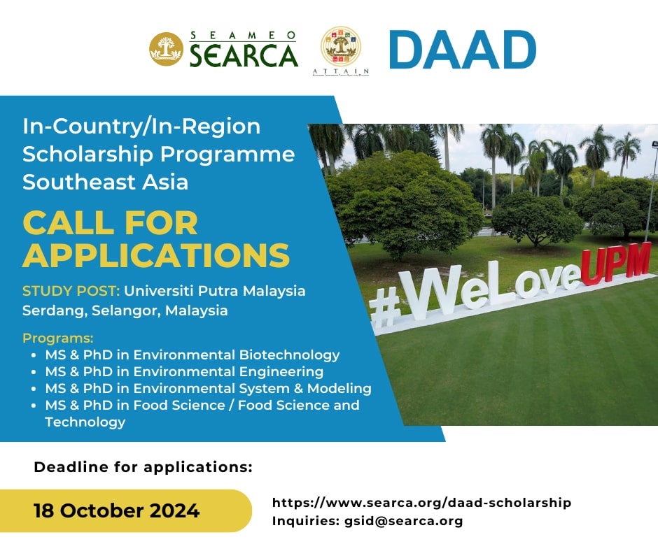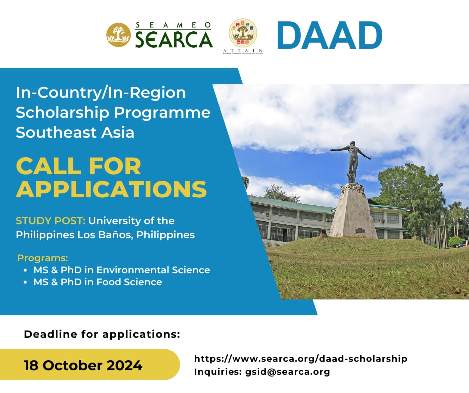 PhD Food Science: https://bit.ly/SEARCA-DAAD-PhD-FS | Learn More | ||