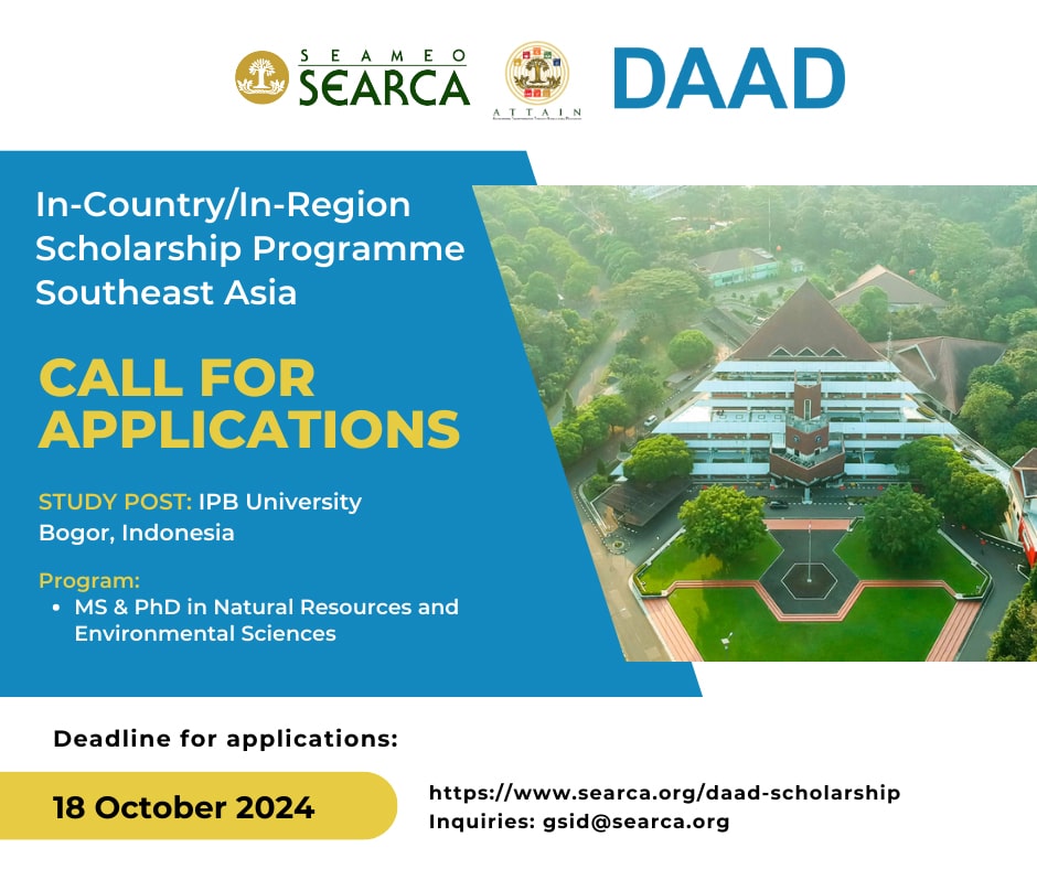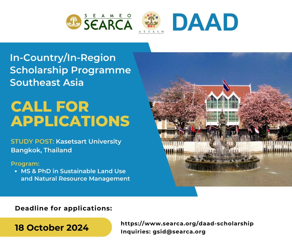PhD Natural Resources Mangement (NRM): https://bit.ly/SEARCA-DAAD-PhD-NRM | Learn More |
