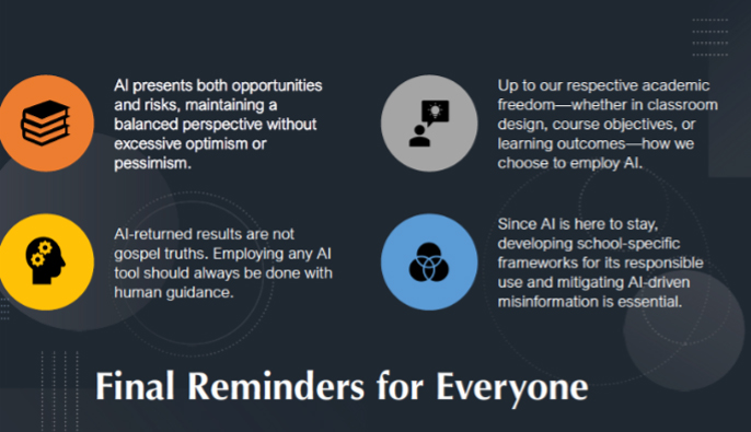 Dr. Pugoy concluded that AI is here to stay, making school-specific AI frameworks and policies essential.