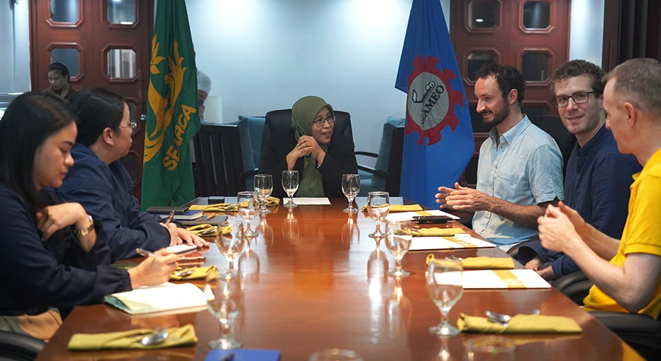 The visitors were welcomed by Dr. Nur. Joining them in the meeting were Dr. Gerlie Tatlonghari, program head, Research and Thought Leadership; Ms. De Torres; Ms. Corales; and Partnerships Unit staff. They were also toured in the SEARCA Hub for Agriculture and Rural Innovation for the Next Generation (SHARING).