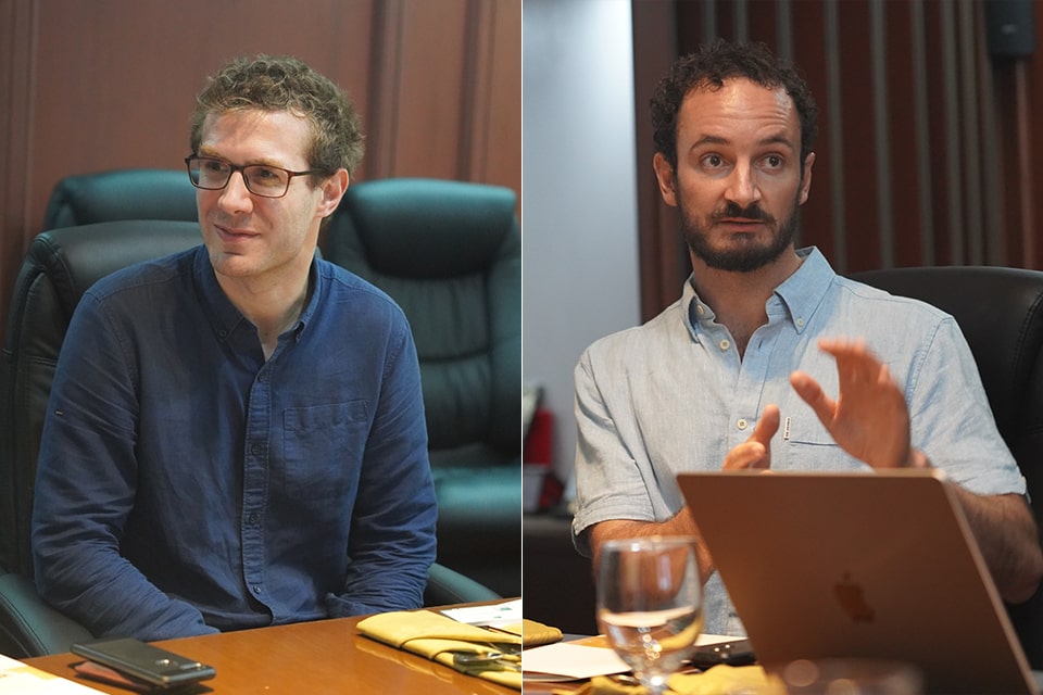 Mr. Carantino (left) and Mr. Hastwell (right) share an overview of their company and its services.Mr. Carantino (left) and Mr. Hastwell (right) share an overview of their company and its services.Ms. Ma. Christina Corales, program specialist, Emerging Innovation for Growth, informed the visitors of the Center's upcoming capacity-building activity on carbon measurement MRV systems in November 2023. This activity will focus on hands-on exercises to familiarize the participants with the Carbon Wise Rice Information Management System (CWRIMS). CWRIMS is a web-based MRV tool that allows farmers to input farm activity data, which are then used to calculate carbon emissions.