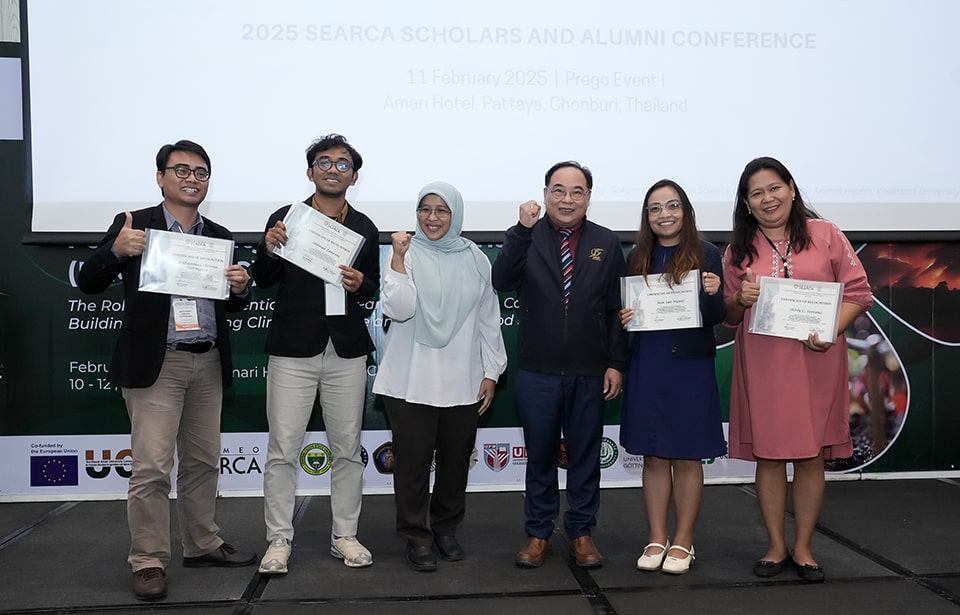 The second day of the conference featured presentations from 13 SEARCA scholars and alumni as part of the 2025 SEARCA Scholars and Alumni Conference. Themed "Innovation Meets Education: Building Pathways for Food Security and Resilience to Climate Change," the event, held in partnership with the PMC FSCC Project and the Regional SEARCA Alumni Association (RSAA), reinforced SEARCA's commitment to education-driven solutions for climate challenges.