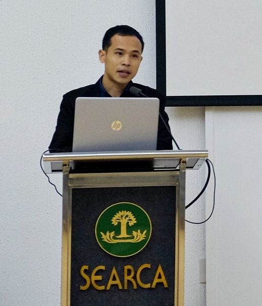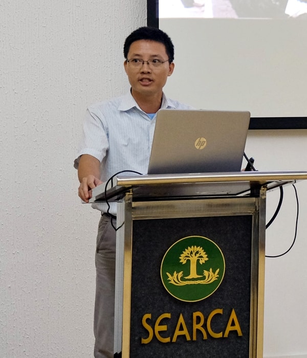 Tran Manh Hai presenting his research on dairy cattle insurance in Hanoi, Vietnam during the GSS.Tran Manh Hai presenting his research on dairy cattle insurance in Hanoi, Vietnam during the GSS.Mr. Tran Manh Hai is a lecturer at Vietnam National University of Agriculture (VNUA) since 2009 teaching rural development, development economics, and development theories for undergraduate students. He received his Bachelor's degree and Master's degree in Agricultural Economics at Hanoi National Economics University, Vietnam. Through a SEARCA Scholarship, he took his PhD in Agricultural Economics at the University of the Philippines Los Baños (UPLB). Mr. Tran Manh Hai discussed his research on "Farmers' preferences and willingness to pay for dairy cattle insurance in Hanoi, Vietnam" during the seminar series. According to his studies, the farmers were mostly concerned with diseases contracted by the cattle and coverage level or number of diseases covered by insurance is valued the most. Besides disease, other risks identified were milk price fluctuation, unfavorable weather condition, input price fluctuation, lack of capital, and price fluctuation of breeding dairy cow. The study recommended further training in terms of dairy cattle insurance and good dairy farming practices, develop various insurance schemes, strengthen the implementation of policies concerning agricultural insurance, and encourage farmers to increase their farm scale.