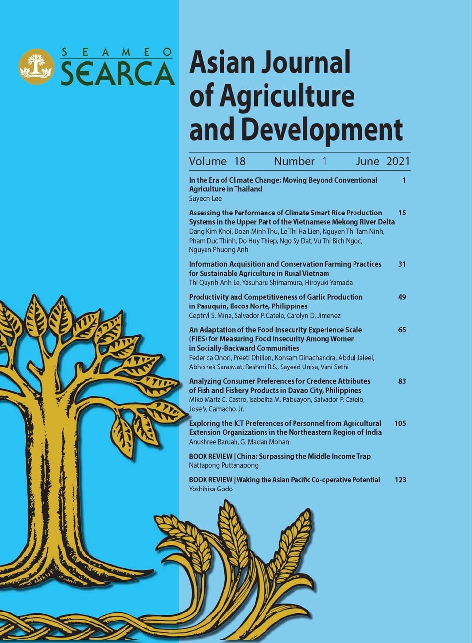 Studies on policy and institutional structures, contextualized assessment tools, and stakeholders’ preferences around sustainable agriculture and food security concerns are the major themes of the June 2021 issue of the Asian Journal of Agriculture and Development (AJAD).