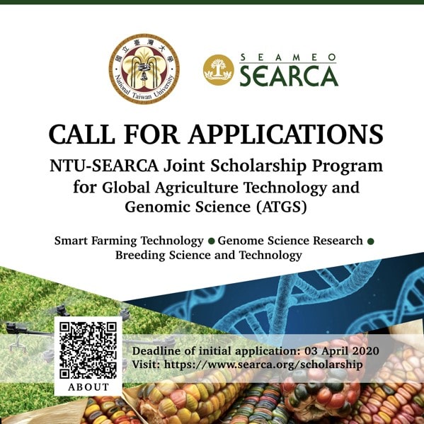 Los Banos, Laguna – National Taiwan University (NTU) and SEARCA collaborated for the offering of a joint scholarship for the Master Program in Global Agriculture Technology and Genomic Science (ATGS). The Global ATGS is offered by the International College of NTU for its students to gain deeper understanding on smart farming technology, genome science research, and breeding science and technology. The NTU-SEARCA Joint Scholarship Program for Global ATGS aims to cultivate agricultural professional talents, encourage academic excellence, and promote the research and development of agriculture within Southeast Asia.