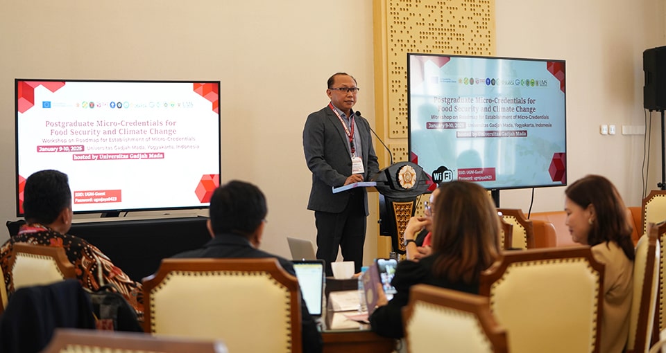 The ERASMUS+-funded program on Postgraduate Micro-credentials in Food Security and Climate Change (PMC FSCC) opened 2025 with a workshop titled Developing a Roadmap for the Establishment of Micro-Credentials. This workshop, held on 9–10 January 2025 at Universitas Gadjah Mada (UGM) in Yogyakarta, Indonesia, marked the project's final event under Work Package 3 (WP3). Organized by UGM in collaboration with Maejo University (MJU), the workshop played a crucial role in finalizing the roadmap for micro-credentials and reaching an agreement among partner universities on offering the program.
