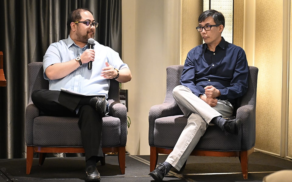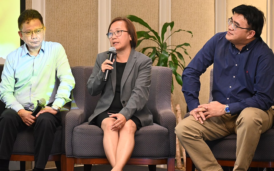 (From left) Panelists Dr. Gabriel Romero, Dr. Analiza Ramirez, and Mr. Edwin Mapanao share their insights during the session.(From left) Panelists Dr. Gabriel Romero, Dr. Analiza Ramirez, and Mr. Edwin Mapanao share their insights during the session.