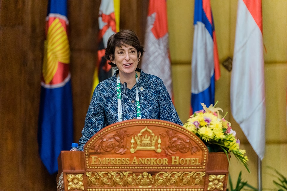 From left: Ms. Charlotte Masiello-Riome, Dr. Danny Hunter, Ms. Bernice Anne De Torres, Ms. Shiela Anunciado, and Dr. Leangsrun Chea lead the plenary discussions on the third day of the workshop.