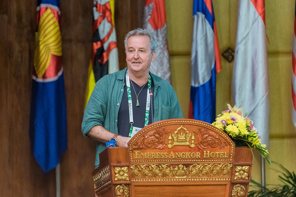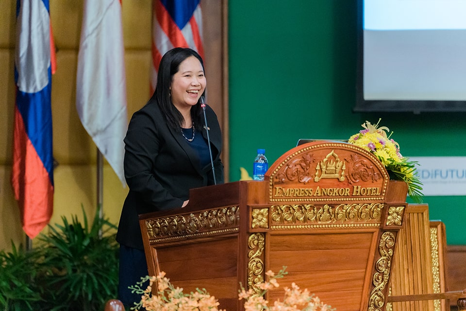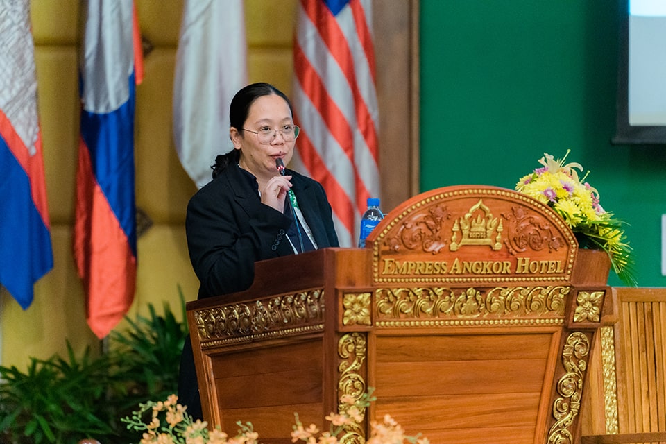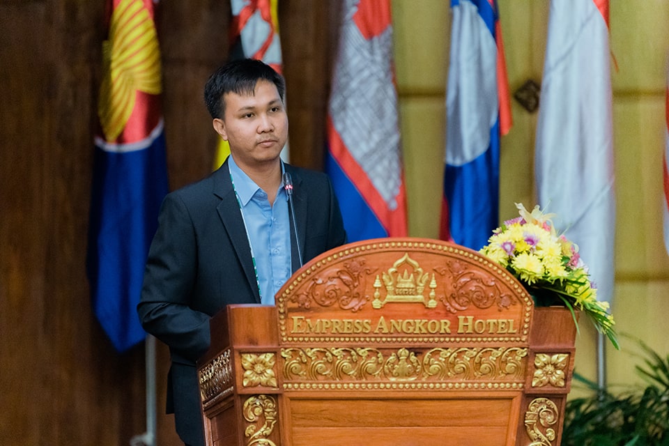 Clockwise from the top: Dr. Bunthan Ngo, Dr. Glenn Gregorio, Dr. Lyda Hok, and Dr. Dexter Galban deliver keynote speeches and messages during the conference.Clockwise from the top: Dr. Bunthan Ngo, Dr. Glenn Gregorio, Dr. Lyda Hok, and Dr. Dexter Galban deliver keynote speeches and messages during the conference.