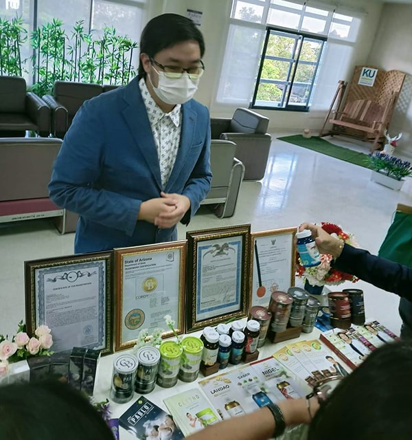 Against the backdrop of KU's Strategy on "Re-skill, Upskill, and New skill," the activity also allowed the participants to visit KU's School of Integrated Science (SIS), which promotes lifelong learning and offers a unique, flexible, and multidisciplinary non-degree courses (micro- credential programs) in collaboration with the government and the private sector. The visit to the Academic Service Promotion Section of the KU Office of Innovation and Social Engagement gave the participants a glimpse of the university's innovative strategies towards Intellectual Property (IP) protection, consultation, education, and IP awareness, IP network cooperation, maintenance of IP database, technology transfer contract management and negotiation, and technology transfer matching and commercialization, IP and patent applications. The participants met with Dr. Chan Makenton, a KU alumnus and Managing Director of CORDYBIOTECH, a well-known biotechnology business that specializes in cell cultures, plant and herbal extracts, and other products for health, beauty, and wellness. CORDYBIOTECH has a Good Manufacturing Practices (GMP) compliance pilot-scale manufacturing facility located inside Kasetsart University, R&D Building and a large-scale plant for mass production.