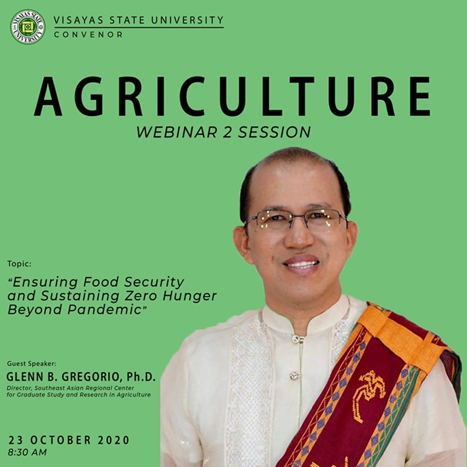 Representing the agriculture sector, SEARCA Director Dr. Glenn B. Gregorio addressed the topic on ensuring food security and sustaining zero hunger beyond the global health emergency. He presented the Center’s newly published paper titled “Assessing the impact of COVID-19 pandemic on agriculture production in Southeast Asia: Toward transformative change in agricultural food systems” that shows the disruptions in agriculture food systems create supply and demand shocks affecting immediate and long-term economic performance and food security.