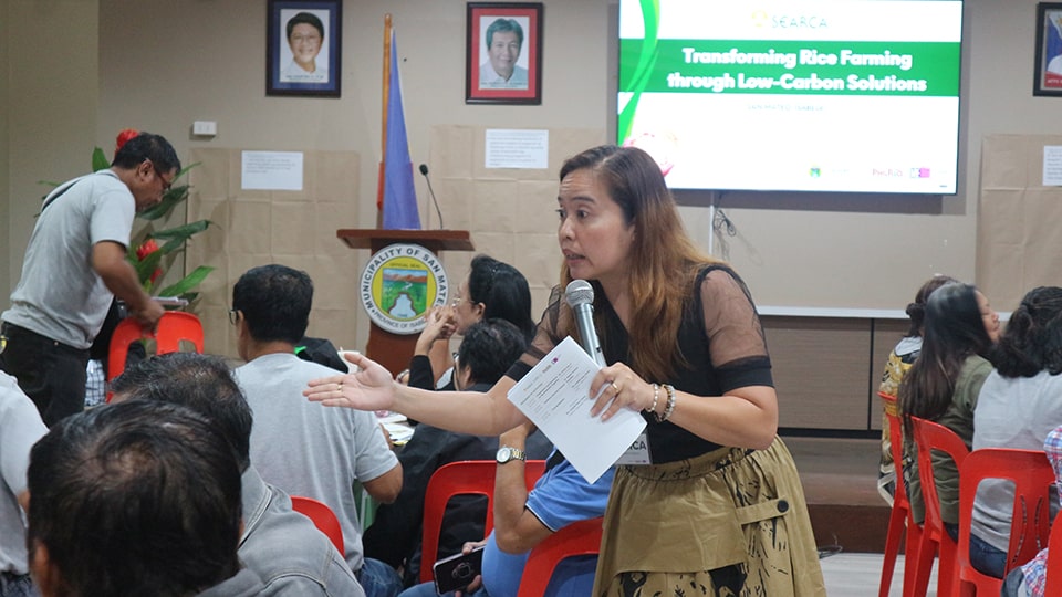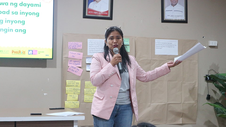 Dr. Jessica Villanueva-Peyraube led a roundtable discussion (RTD), encouraging farmers in a meaningful dialogue by answering guide questions about uses, practices, ordinances, challenges, strategies, and value related to rice straw. Grouped by membership to organizations such as farmer cooperatives and irrigator associations, participants had a chance to express themselves based on their roles in the rice value chain.