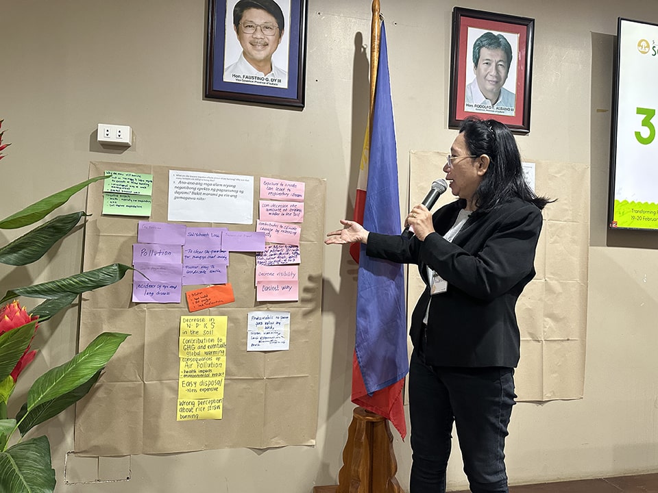 The initial result of the RTD suggests that the participants were aware of the negative repercussions of burning and leaving the rice straws in the field. Among the identified effects were pollution not only in the air but also in the soil. It was also recognized that mismanagement of rice straw poses environmental risks like climate change and health risks, such as respiratory illness and eye irritation, especially when burned. Dr. Villanueva-Peyraube elaborated that the activity was conducted to gauge the rice production stakeholders' perspective on potentially repurposing and recycling rice straws as a climate mitigation practice.
