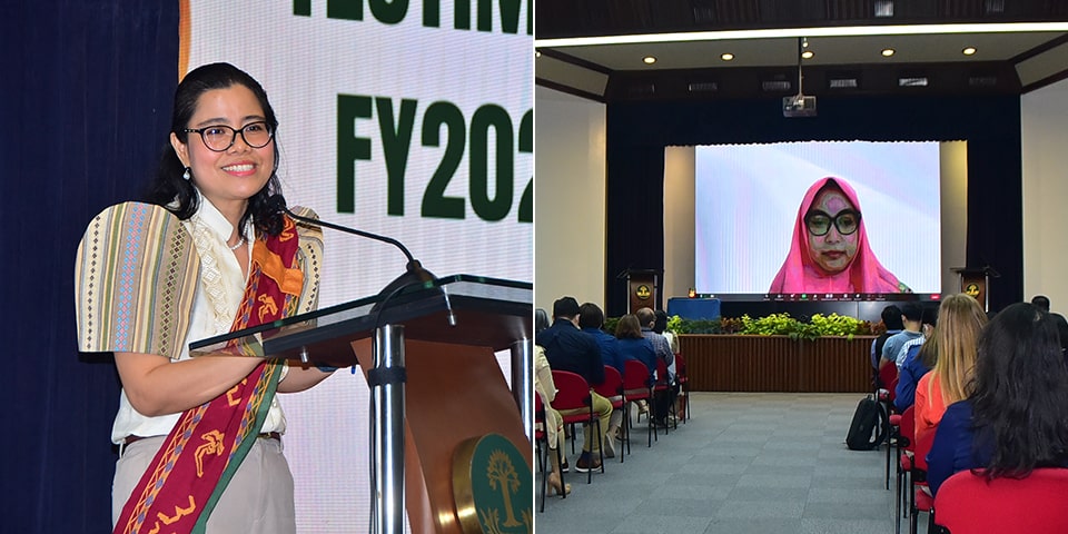 On behalf of the graduating scholars, Dr. Karen Bautista and Dr. Vina Eka Aristya expressed their sincerest gratitude to their SEARCA family and their loved ones for supporting them throughout their years of study. Karen shared her lessons learned on the importance of time, of patriotism, integrity, excellence, and spirituality, and the value of partnership, networking, and collaboration. Vina, on the other hand, exhorted her fellow scholars that the knowledge gained in their studies must benefit not just themselves, but their respective families, societies, and countries. Vina concluded her speech by saying that, "Education is the most powerful weapon for changing the world."