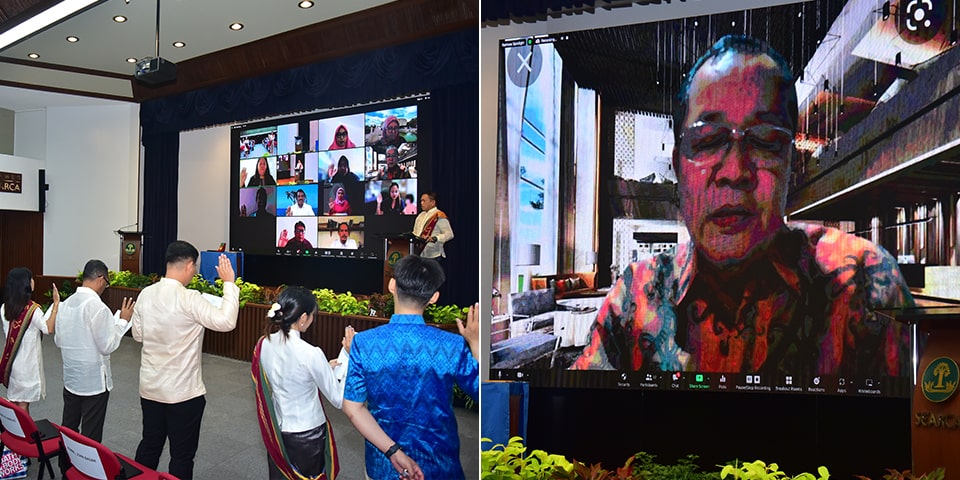 Dr. Asdi Agustar, president of the Regional SEARCA Alumni Association (RSAA), administered the RSAA Oath of Membership to the new graduates. In his closing message, Dr. Asdi congratulated the new graduates and reminded them to make use of the networks established during their studies when they return to their respective work. He also encouraged them to work together for the progress of the association and the welfare of the people.
