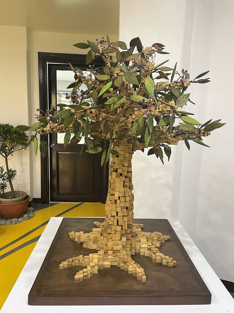 A molave tree inspired by the SEARCA logo was designed to embody innovation and creativity in sustainability. The tree was made of at least 400 volume elements from bamboo, scrap mahogany, wastepaper, and recycled metals.
