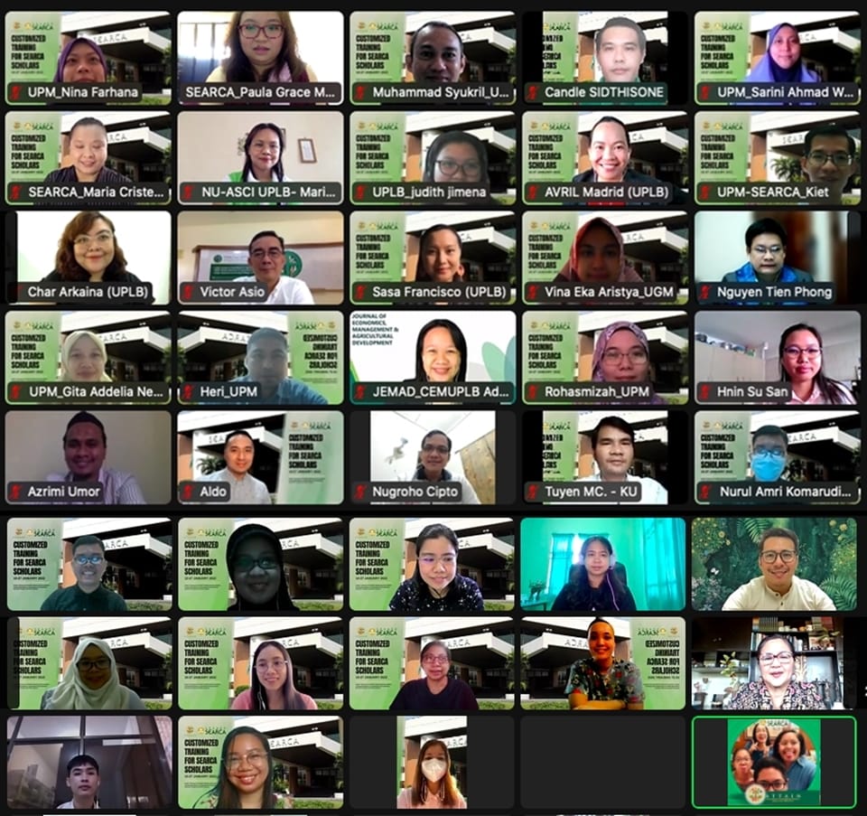 SEARCA, through the Education and Collective Learning Department (ECLD), organized the Online Training on Scientific Writing and Presentation and the Online Training-Workshop on Quantitative and Qualitative Research Designs and Data Analysis from 10-25 January 2022 as part of the Customized Training for SEARCA scholars and grantees. The training aims to build the capacity of future agriculture leaders and professionals and enhance 21st-century skills. The University of the Philippines Los Baños (UPLB) College of Development Communication (CDC) will serve as Training Coordinators for the programs.