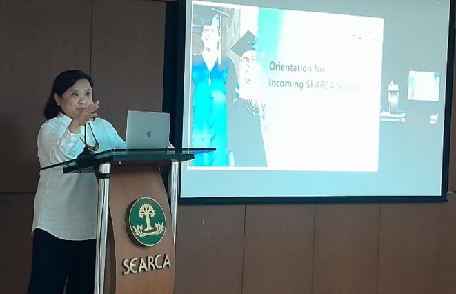 (Photo by Zacyl Jalotjot, SEARCA)(Photo by Zacyl Jalotjot, SEARCA)The orientation featured a briefing on SEARCA, its 11th Five-Year Plan, and specific discussions about the graduate scholarship program delivered by Dr. Maria Cristeta Cuaresma, senior program head of ECLD. The orientation aimed to guide the graduate students about the scholarship process and administration policies throughout the duration of their study program, including other benefits extended to them such as support for paper presentations, publication fees, and customized training activities.