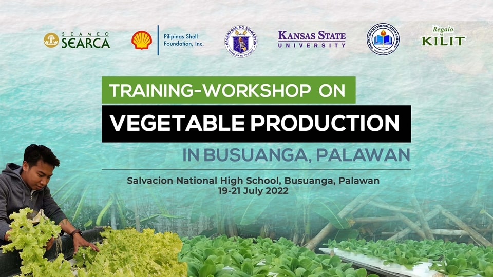 Busuanga, Palawan – The Southeast Asian Regional Center for Graduate Study and Research in Agriculture (SEARCA), through its School-plus-Home Gardens Project (S+HGP), will organize a three-day training-workshop on vegetable production at Salvacion National High School, Busuanga, Palawan from 19 to 21 July 2022. This is in line with the project’s commitment to build the capacities of agricultural extension workers in local government units (LGUs) of and educators from Busuanga and Coron, Palawan in providing technical assistance on crop production and improving soil productivity in the school gardening activities of target schools.
