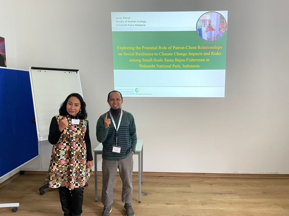 Amar presented his PhD research on Exploring the Potential Role of Patron-Client Relationship on Social Resilience to Climate Change Impacts and Risks among Small Scale Sama Bajau Fishermen in Wakatobi National Park, Indonesia. The study tackled the perceived impacts and risks of climate change, the forms of patron-client relationships among the fishers, the relationships' roles on the Bajau fishers' social resilience to climate change impacts and risks, and the social resilience of the fishermen to these impacts and risks. Amar's research results showed that the Bajau fishers perceived impact and risks on their food availability, family income, livelihood, family conflict, and their future as a maritime tribe. Furthermore, the Bajau fishers maintained their relationship with the middlemen, and strengthened their partnerships with NGOs, fisher cooperatives, marine and fisheries officials of the Wakatobi district government, and the national park authority. These established networks have assisted the Bajau fishers in coping, adapting, and transforming their lives and livelihoods under the current and potential impacts and risks of climate change. The conference organizers from the Biosphere Reserves Institute, Eberswalde University for Sustainable Development, considered Amar's research as an important input during the joint exchanges of early-career scientists.