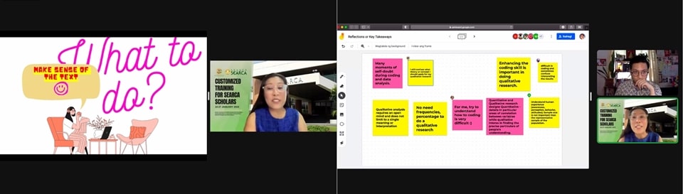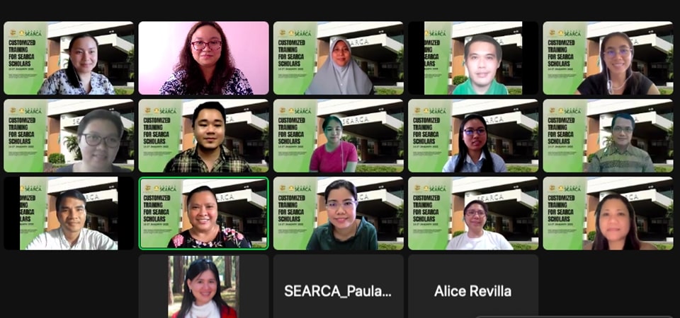 The Training-Workshop on Quantitative and Qualitative Research Designs and Data Analysis held its last lecture and coaching session on 25 January 2022. The College of Development Communication of the University of the Philippines Los Baños (UPLB-CDC) facilitated the training as part of the customized training for scholars organized by SEARCA through the Education and Collective Learning Department (ECLD).