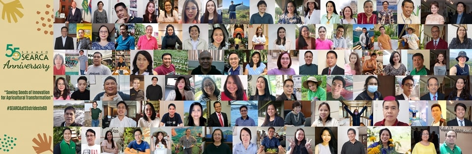 Reliving the past, celebrating the present, and looking forward to the future of the Southeast Asian Regional Center for Graduate Study and Research in Agriculture (SEARCA), current and former partners, alumni, scholars, grantees, officials and staff gathered together in a virtual culminating program of the Center’s 55th Anniversary held on 26 November 2021 via Zoom and Facebook Live.