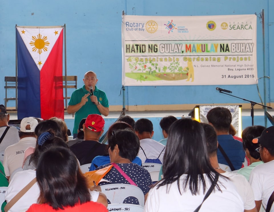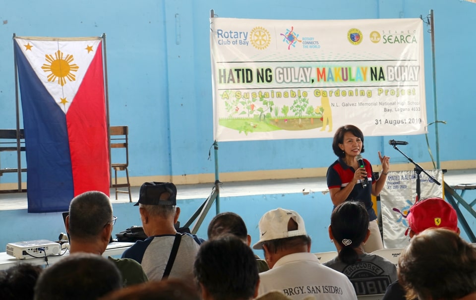 The Southeast Asian Regional Center for Graduate Study and Research in Agriculture (SEARCA) has partnered with the Rotary Club of Bay RID3820 and the municipal government of Bay, Laguna in their Sustainable Gardening Project dubbed “Hatid ng Gulay, Makulay na Buhay,” which was launched on 31 August 2019.