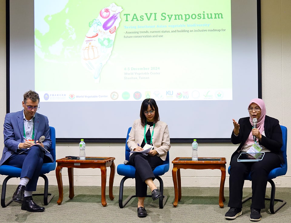 Dr. Nur also represented SEARCA at a symposium hosted by WorldVeg headquarters in Tainan on 4–5 December 2024. As a panelist in the session "Regional Perspectives on Rescue, Conservation, and Use of Southeast Asian Vegetable Biodiversity," she shared insights into regional strategies for preserving vegetable diversity. She also actively contributed to a working group outlining a 10-year roadmap for conserving and sustainably using Southeast Asia's vegetable biodiversity.