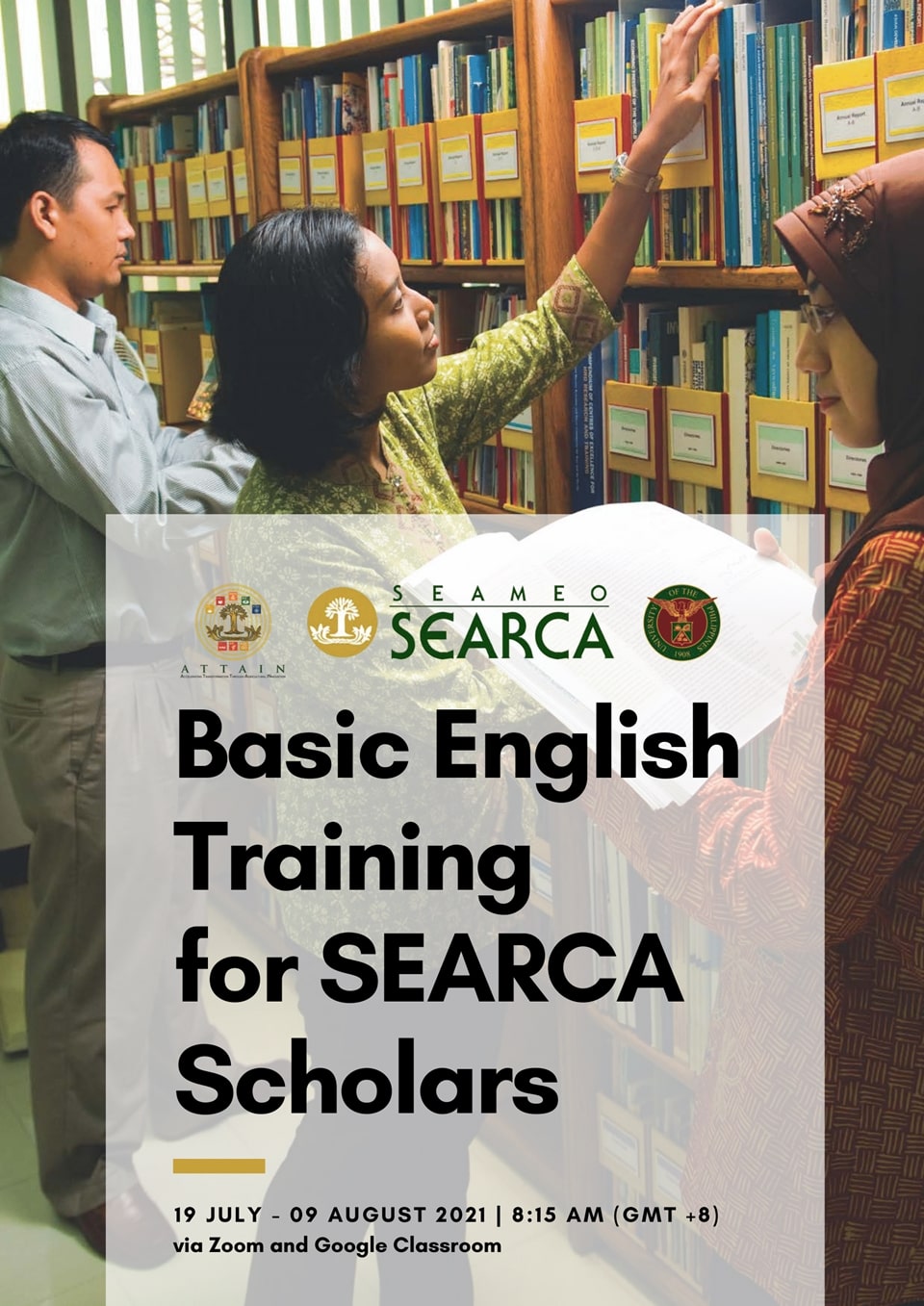 As a commitment to futureproofing Southeast Asian learners to be influential catalysts of agri innovation in this time of the pandemic, the Southeast Asian Regional Center for Graduate Study and Research in Agriculture (SEARCA) partners once again with the University of the Philippines Los Baños-Office of the Vice Chancellor for Research and Extension (UPLB-OVCRE) for a Basic English Training for SEARCA scholars held from 19 July 2021 to 9 August 2021 via Zoom and Google Classroom.