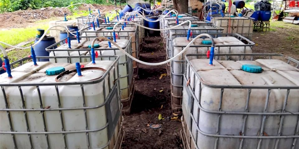 Installation, operation, and performance analysis of unit-scale AD system: The experiment was expanded to six 1000L gas collectors using IBC tanks, each setup corresponding to treatments with varying feedstock ratio. The setup was fully installed on 16 December 2024 while data recording on daily gas production is still ongoing.