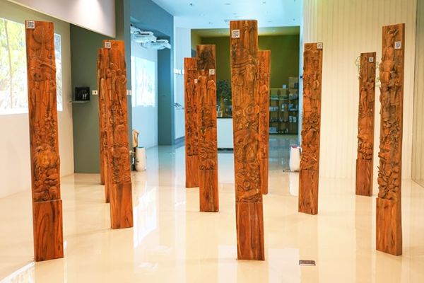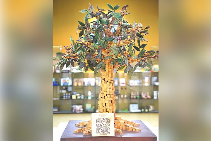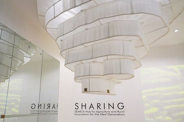 Discover how SEARCA has contributed to agriculture in each of the 11 Southeast Asian countries through presentations accessed via QR codes. Each country is represented by a carved wooden plank depicting its landmarks, traditional attire, flora, fauna, and agricultural products.
