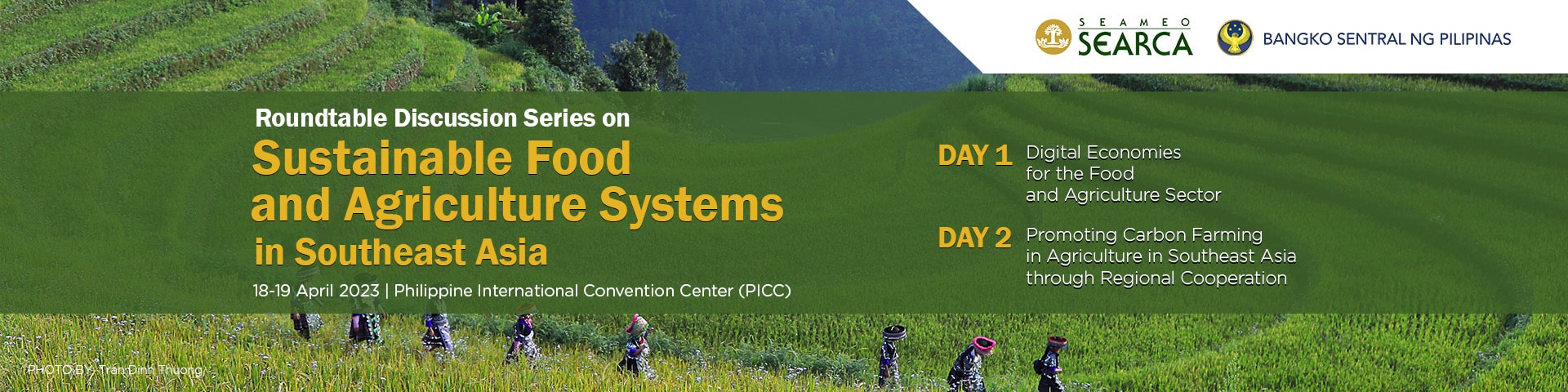 The Southeast Asian Regional Center for Graduate Study and Research in Agriculture (SEARCA) and Bangko Sentral ng Pilipinas (BSP) partnered for the conduct of the Roundtable Discussion Series on Sustainable Food and Agriculture Systems in Southeast Asia on 18-19 April 2023 at the Philippine International Convention Center (PICC) in Manila, Philippines.